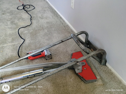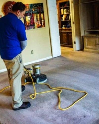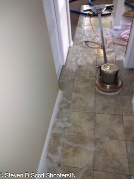 Once I am done pre spray then we agitate the carpet with ta floor machine. The idea is to gently agitate the fiver depending on what I am up agains’t determines what kind of brush I will use.